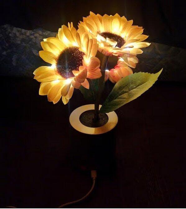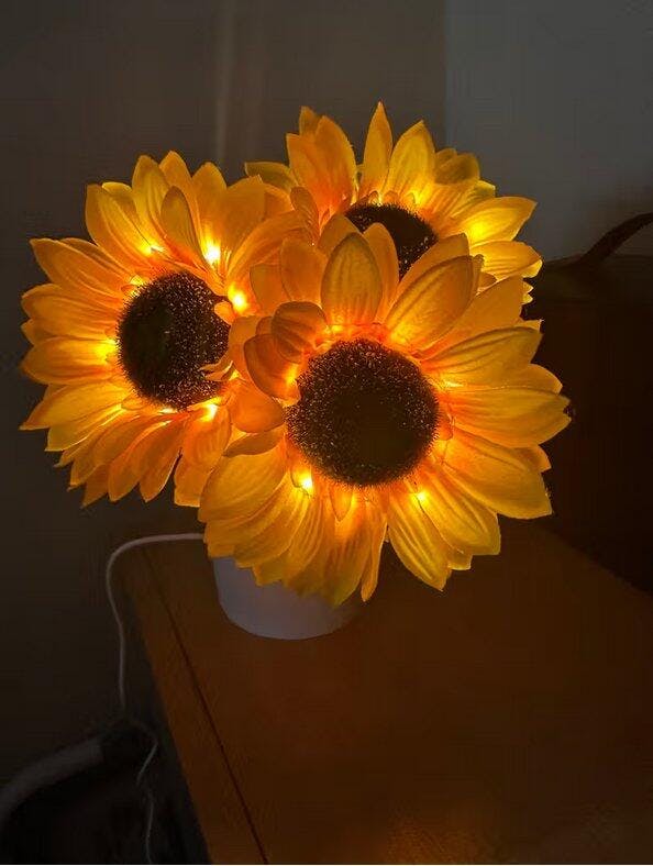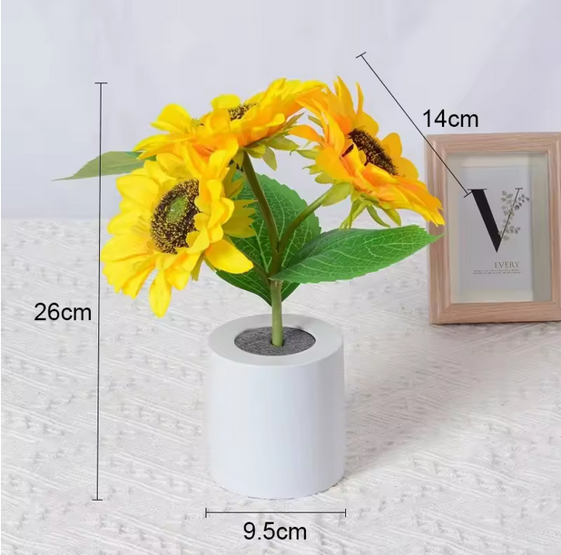Ein gelungener Kauf! Ich war auf der Suche nach einem kleinen dekorativen Licht und diese Sonnenblumenlampe hat meine Erwartungen übertroffen. Der Topf ist dezent und modern, und die Blumen leuchten hell, aber nicht störend. Sie verleiht dem Raum sofort einen Hauch von Freude und Wärme. Die Verarbeitungsqualität scheint ausgezeichnet zu sein. 5 verdiente Sterne.